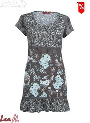 Rozkloszowana sukienka ecru z pasem w złote kółka
