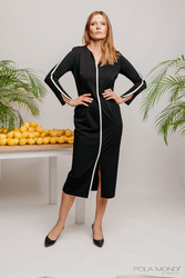 wizytowy komplet sukienka+płaszczyk w kolorze granatowym wzór kółka