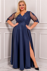 Sukienka granatowa z wstawkami z elastycznej siatki marki Francesca Antonucci