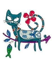 Broszka turkusowy kot z kwiatkiem na ogonie