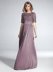 sukienka z gipiury z transparentnym rękawem łososiowa