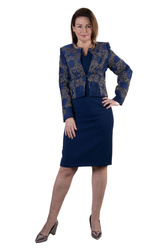 wizytowy komplet sukienka+płaszczyk w kolorze indygo