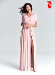 Sukienka maxi z pęknięciem na lewej nodze w kolorze pudrowego różu marki marselini