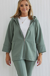 Komplet dresowy z łączonych tkanin, bluza + spodnie z lampasem w kolorze khaki