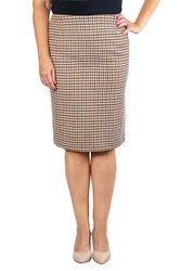 Spódnica beżowo brązowa szyta z półklosza marki Classic Fashion