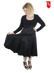 Rozkloszowana sukienka czarna z pasem w białe kółka