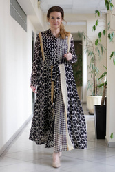 Zwiewna sukienka o zróżnicowany wzorze w kolorze czerń/beż